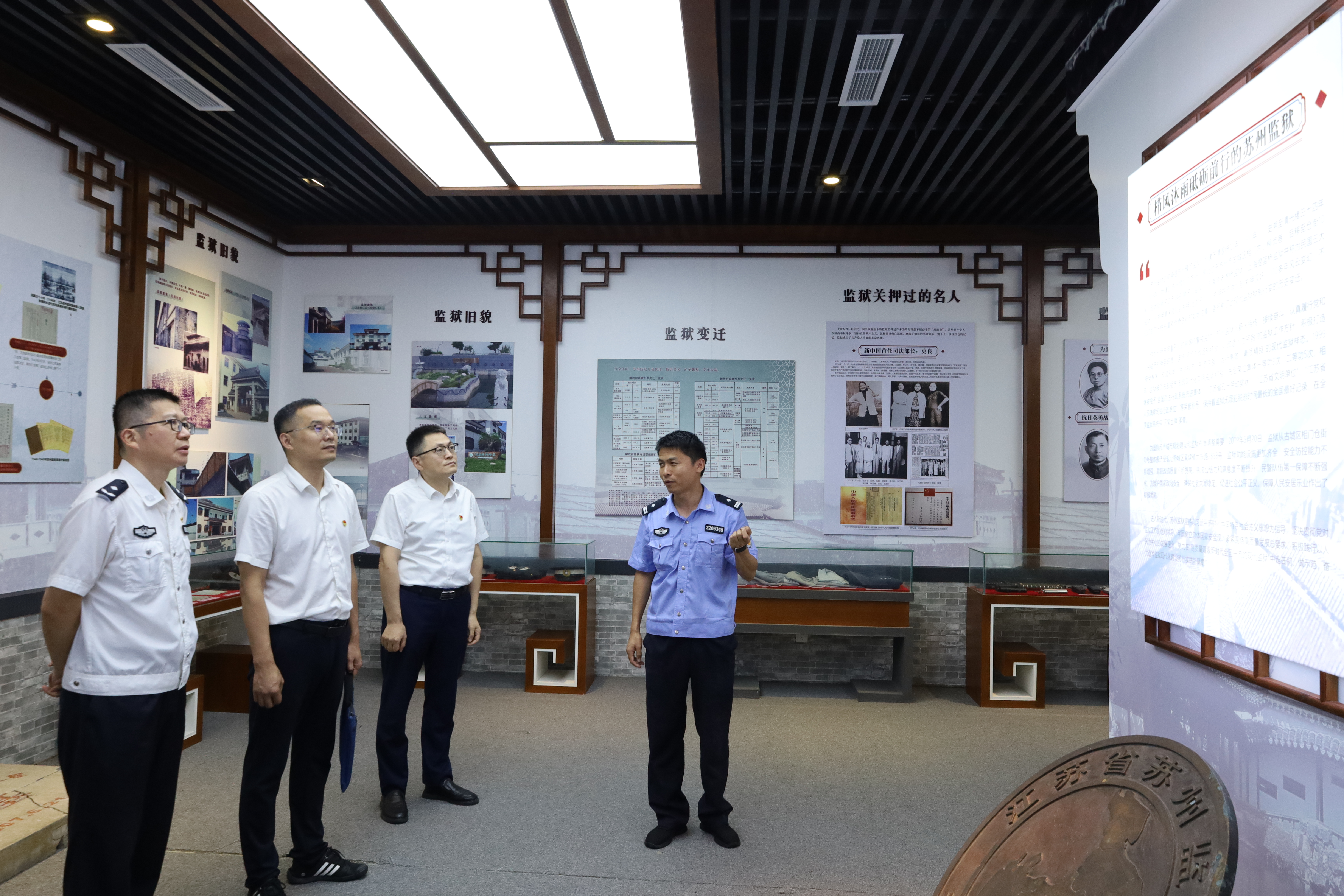 在监狱工作人员的引导下,教职工们首先走进监狱史料陈列馆。通过图文资料、实物展示与现场讲解,大家直观感受到监狱的规范化管理流程,深入了解服刑人员的改造生活。斑驳的高墙、森严的警戒设施与真实案例展板,让教职工深刻体会到违法犯罪的代价与自由的可贵。