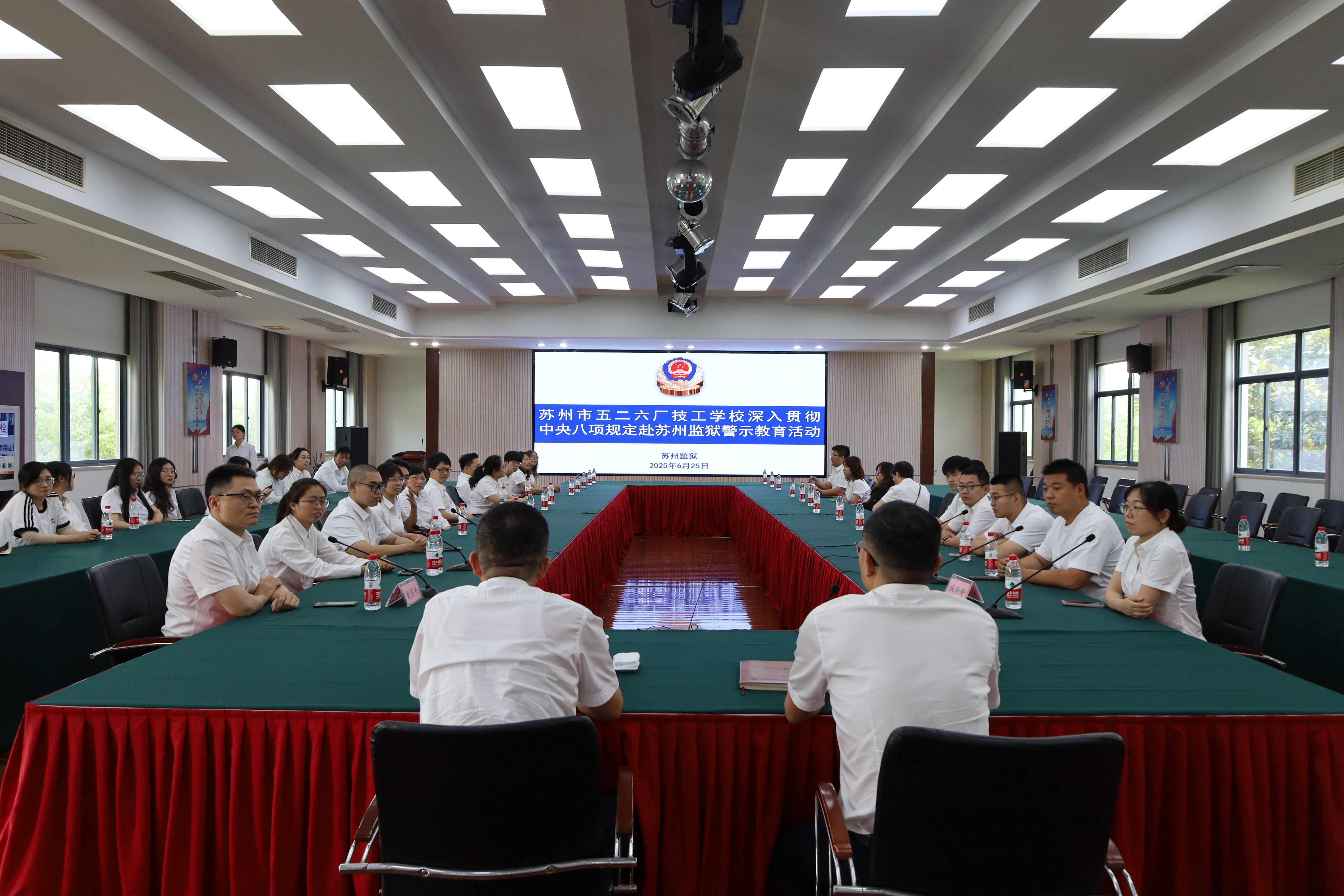 为深入贯彻中央八项规定精神,进一步增强教职工法治观念与廉洁自律意识,6月25日学校组织全体教职工赴苏州监狱开展警示教育活动。通过“沉浸式”参观、警示教育片学习及专题研讨,全体教职工接受了一场触及心灵的廉洁教育,筑牢了拒腐防变的思想防线。